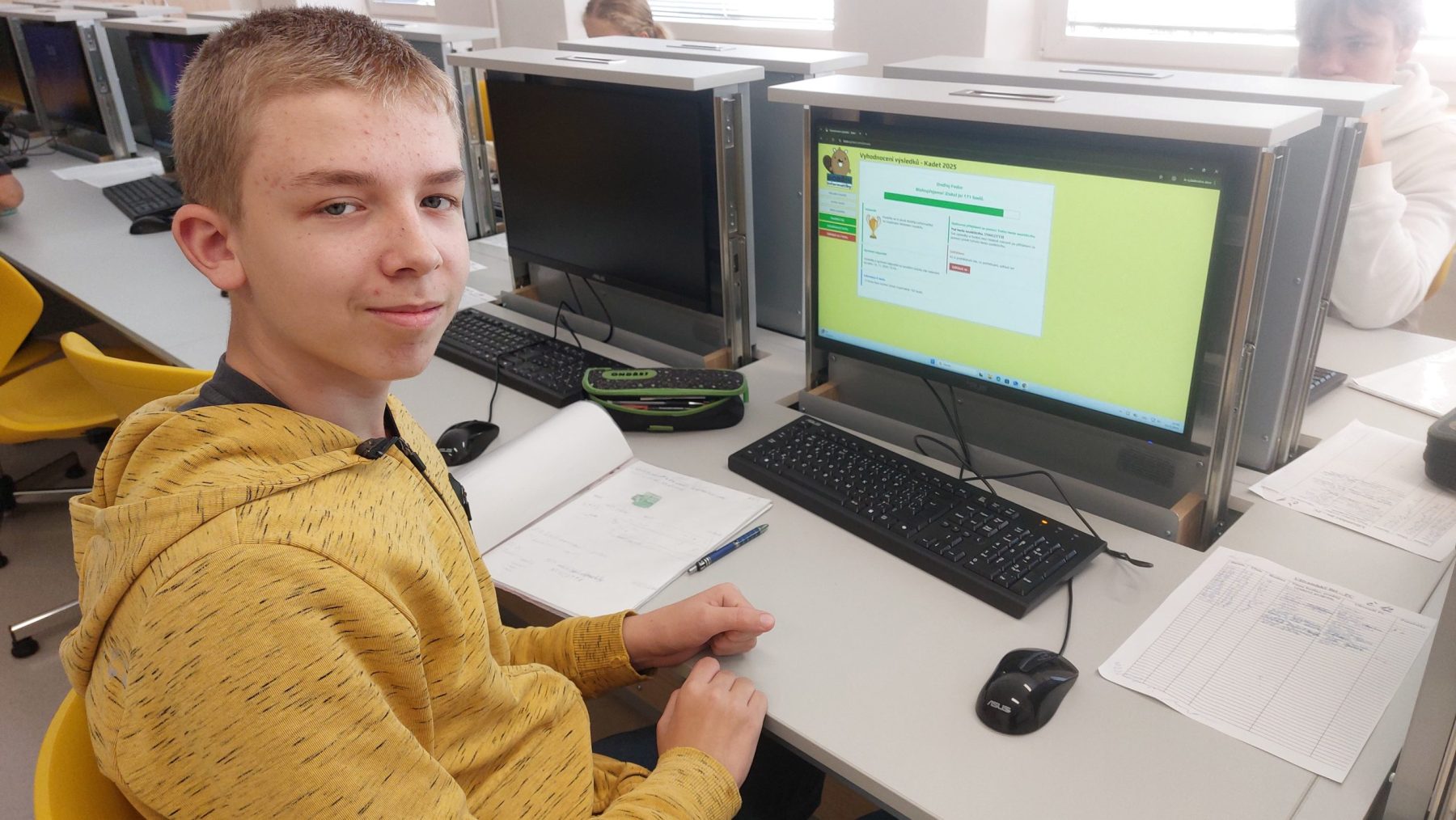 Dne 22. 10. 2025 proběhlo 1. kolo celonárodní soutěže z oblasti IT pro žáky 8. – 9. ročníku, která je zaměřeno na otázky z digitální gramotnosti. Soutěžní úkoly prověřily vědomosti a znalosti z informačních technologií a zároveň rozvíjely matematické a logické myšlení u našich žáků. Pořadí žáků se bude určovat dle počtu správných odpovědí i za čas, za který byly tyto otázky zodpovězeny.